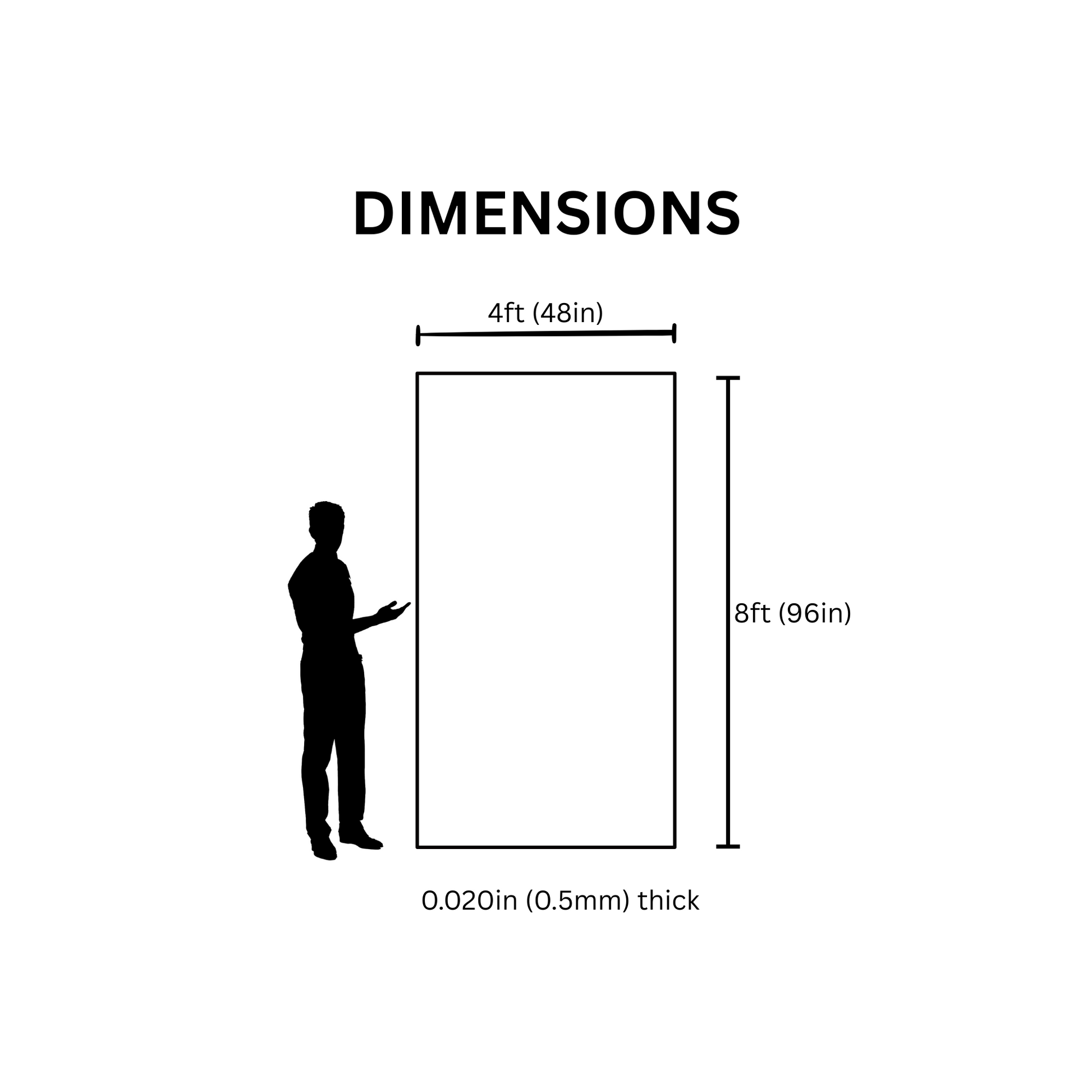 A premium clear PET‑G plastic sheet, sized 8 ft × 4 ft (96" × 48") with a thickness of 0.020″ (0.5 mm or 20 thou). Each side comes with protective film to prevent scratches during shipping. Ideal for crafting, protective barriers, signage, and lightweight fabrication.